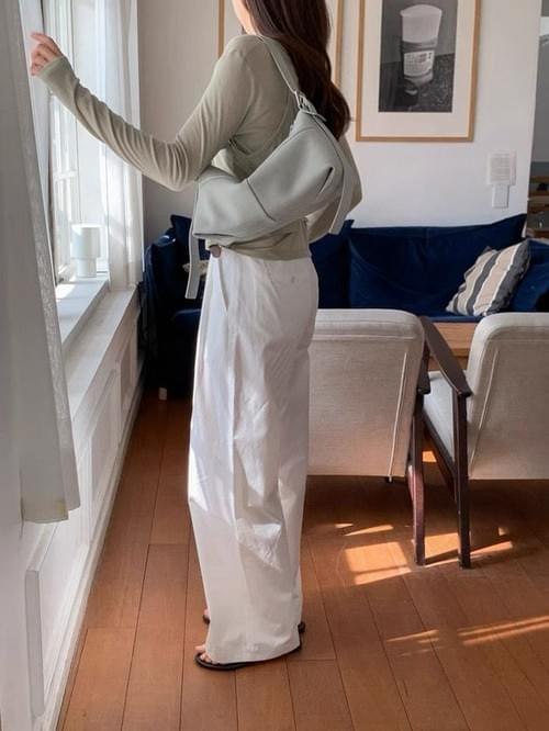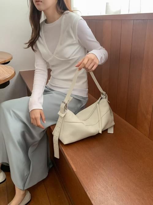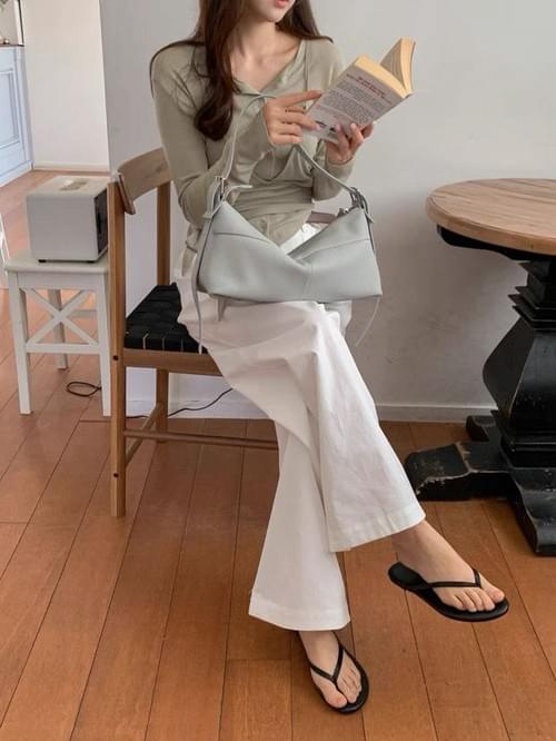 26SSB03 軟料全牛皮壓線寬肩側背包