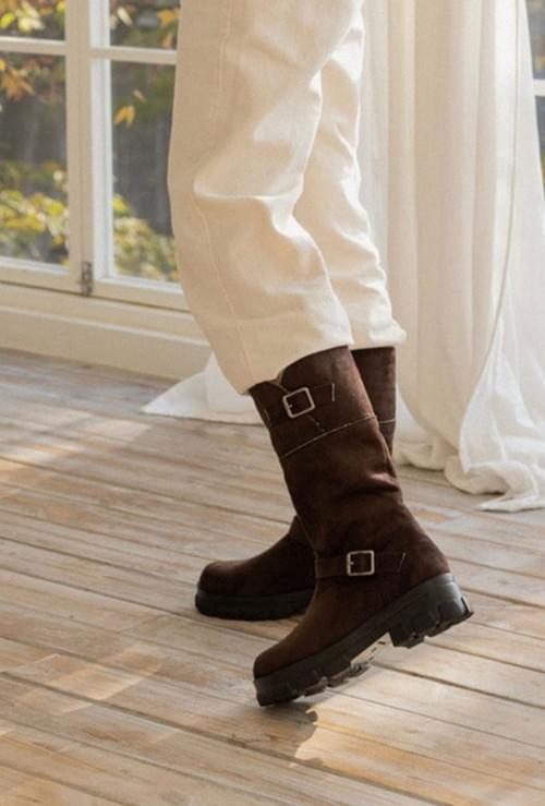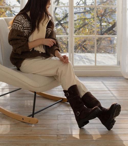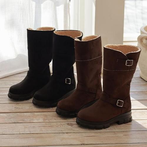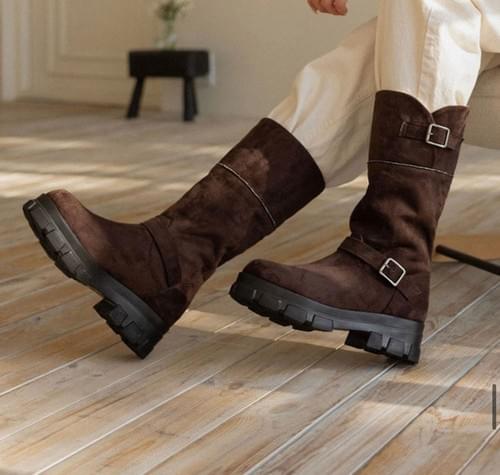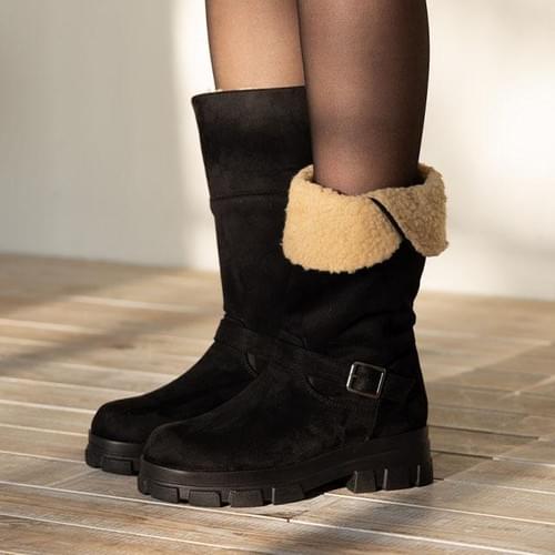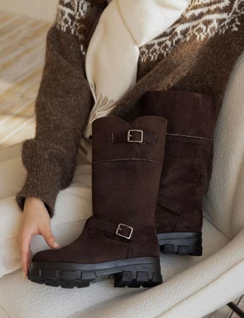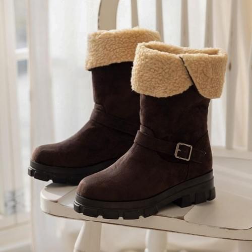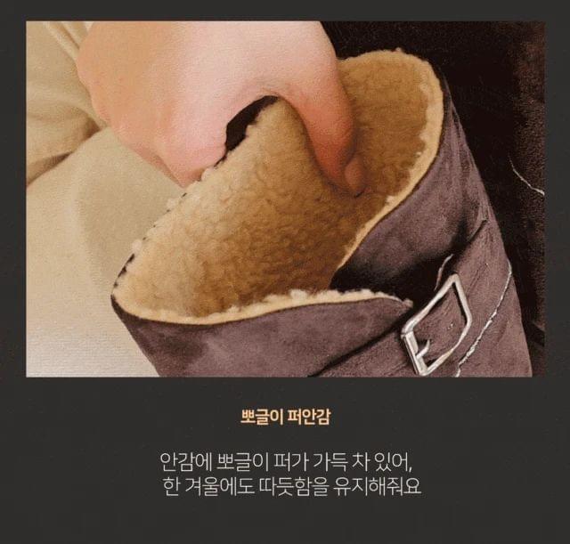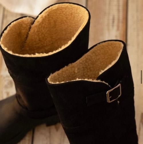 鞋款以型格扣帶外型設計搭配柔軟厚毛皮內裡