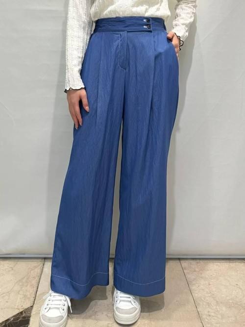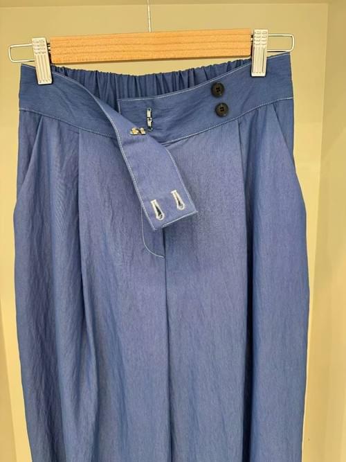 LC2563 雙扣滑布料直腳褲