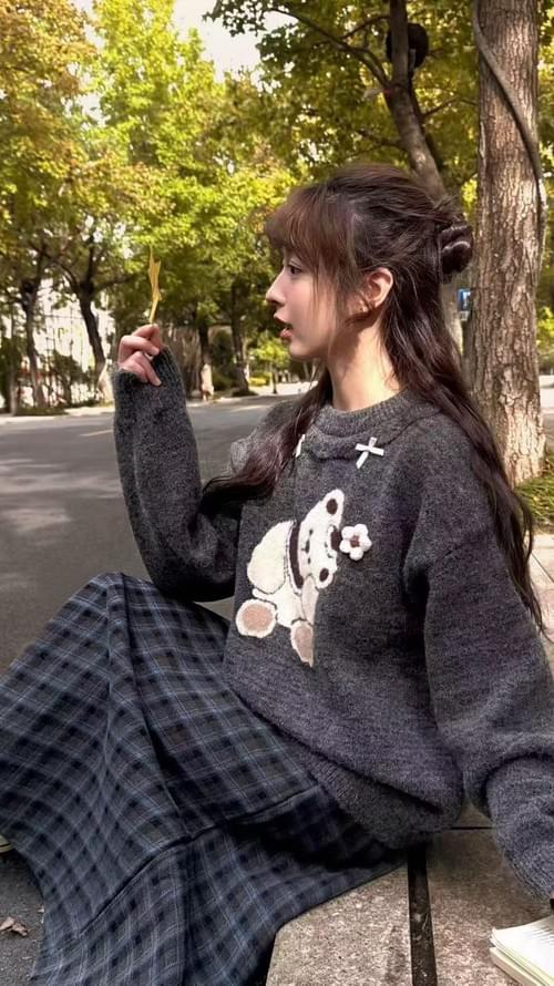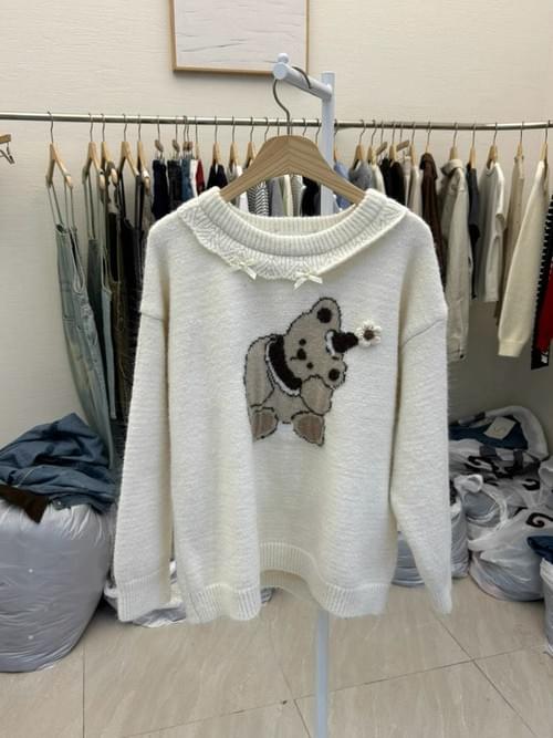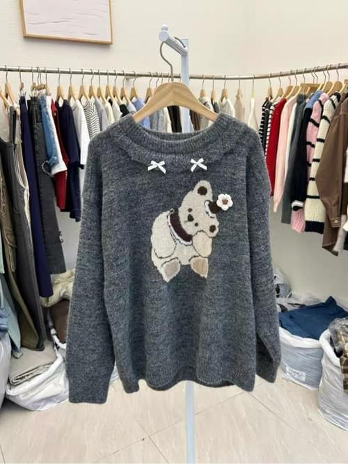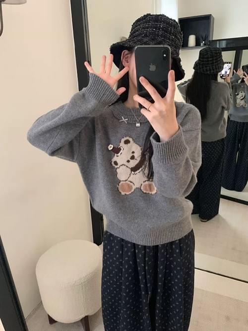 LC26AW05 小熊緹花圓領羊毛毛衣