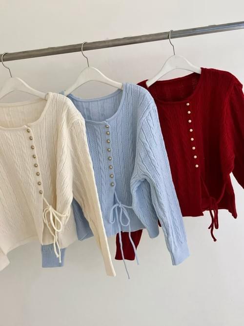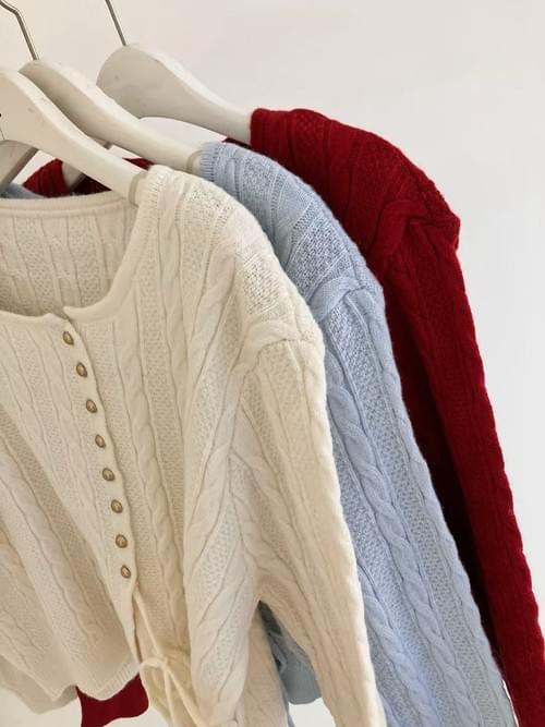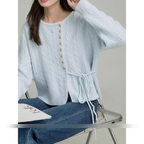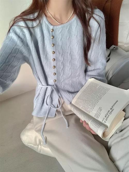 LC26AW12 溫柔麻花金鈕扣側綁帶上衣