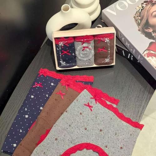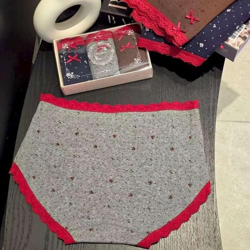 LCAW26LP21紅邊蕾絲玫瑰碎花3件禮盒
