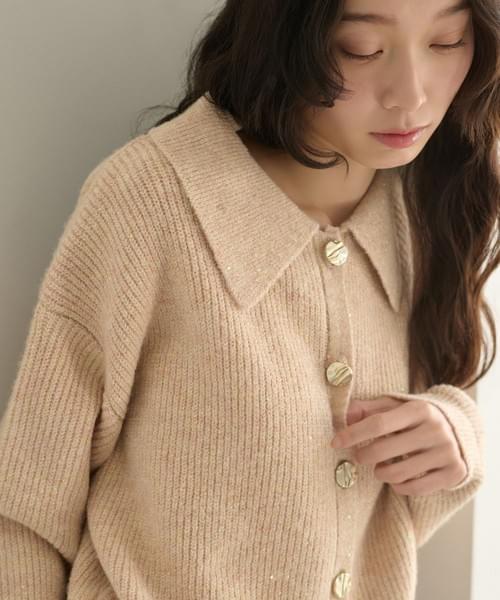 LCSS2607 閃粉金扣針織襯衫