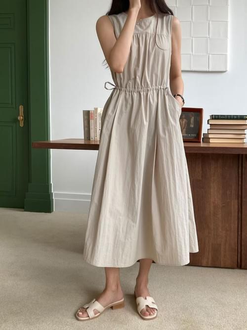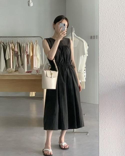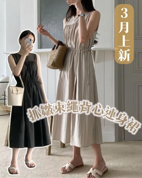 LCSS2623 熱賣款 抓皺束繩背心連身裙