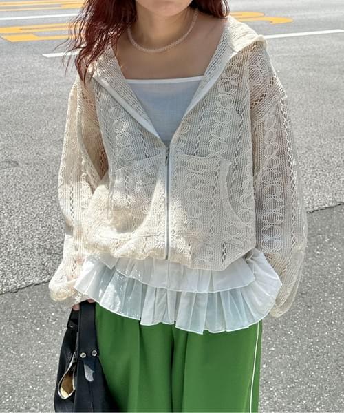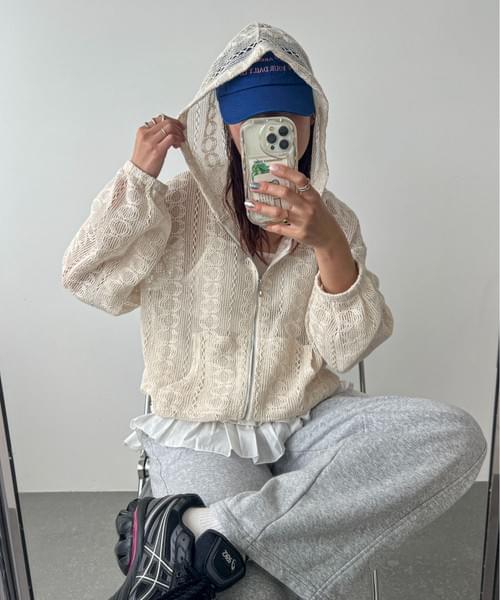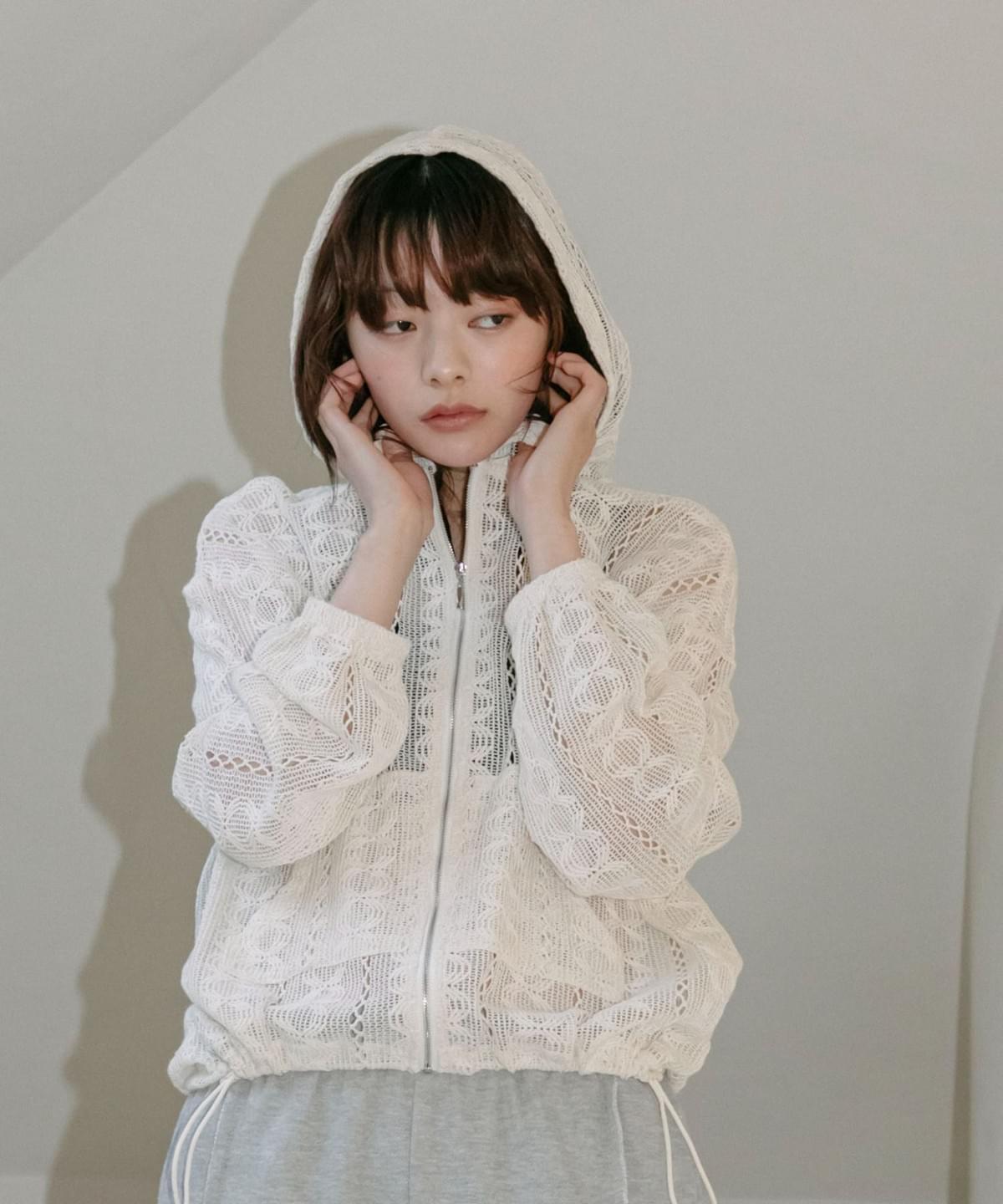 LCSS2628 縷空通花蕾絲hoodie 外套