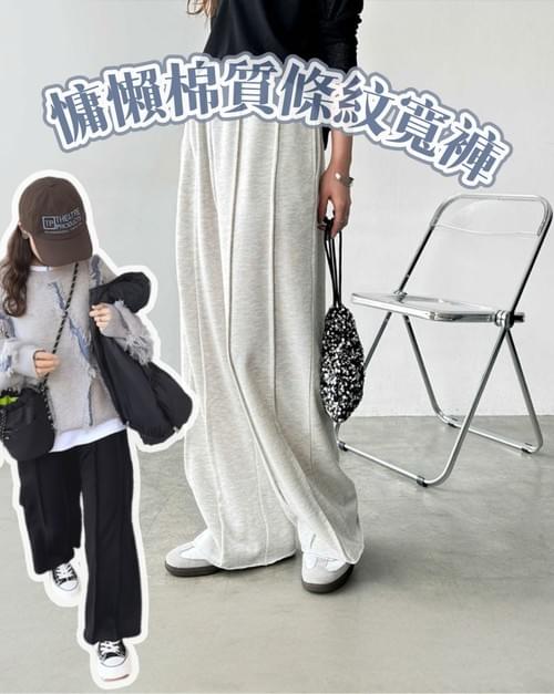 LCSS2635 慵懶棉質條褲寬褲
