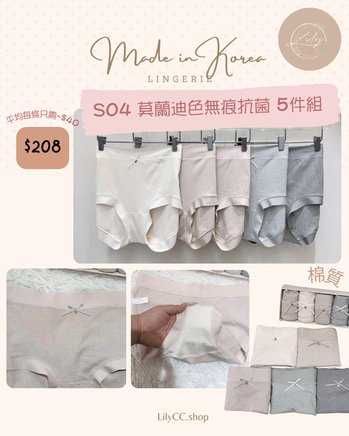 S04 莫蘭迪色無痕抗菌 5件組