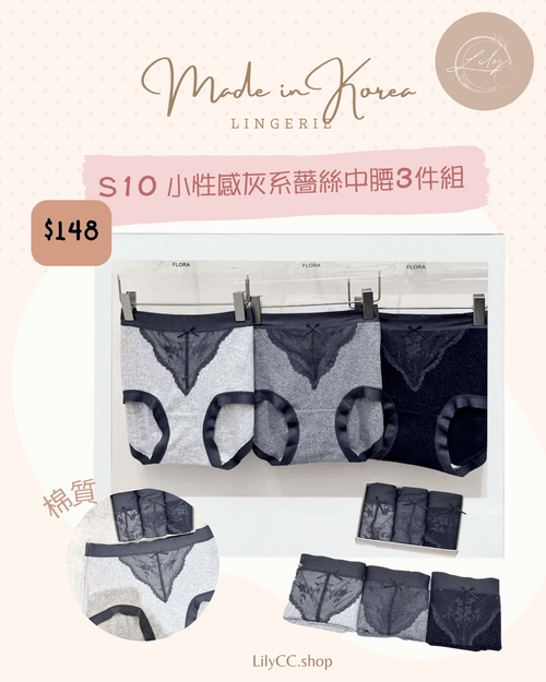 S10 小性感灰系薔絲中腰3件組