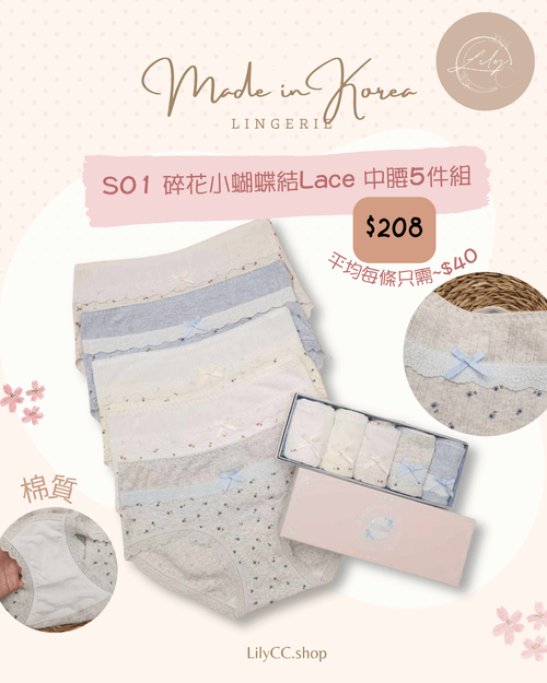 S01 碎花小蝴蝶結LACE 5件組