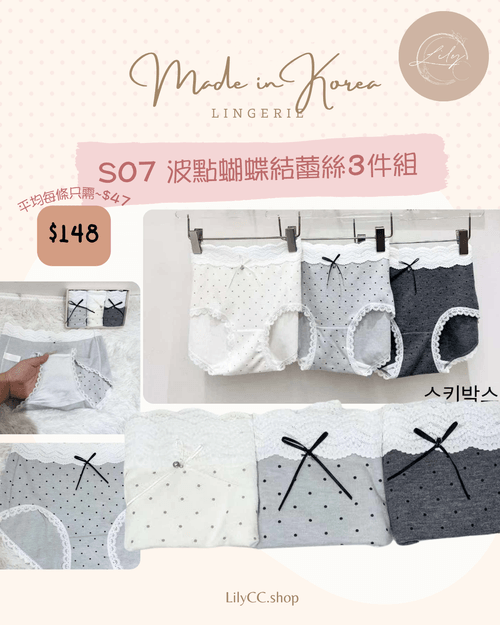 S07 波點蝴蝶結蕾絲3件組