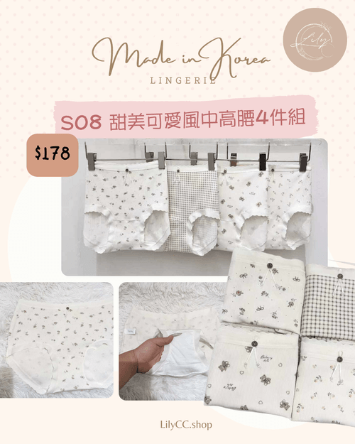 S08 甜美可愛風中高腰4件組