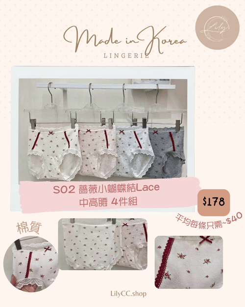 S02 薔薇小蝴蝶結Lace 中高腰 4件組