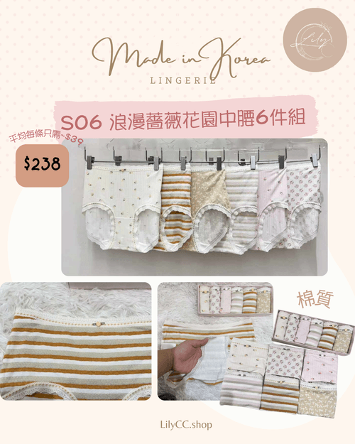S09 愛心蕾絲中腰6件組