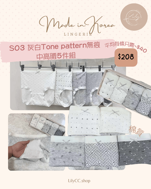 S03 灰白Tone pattern無痕 中高腰5件組